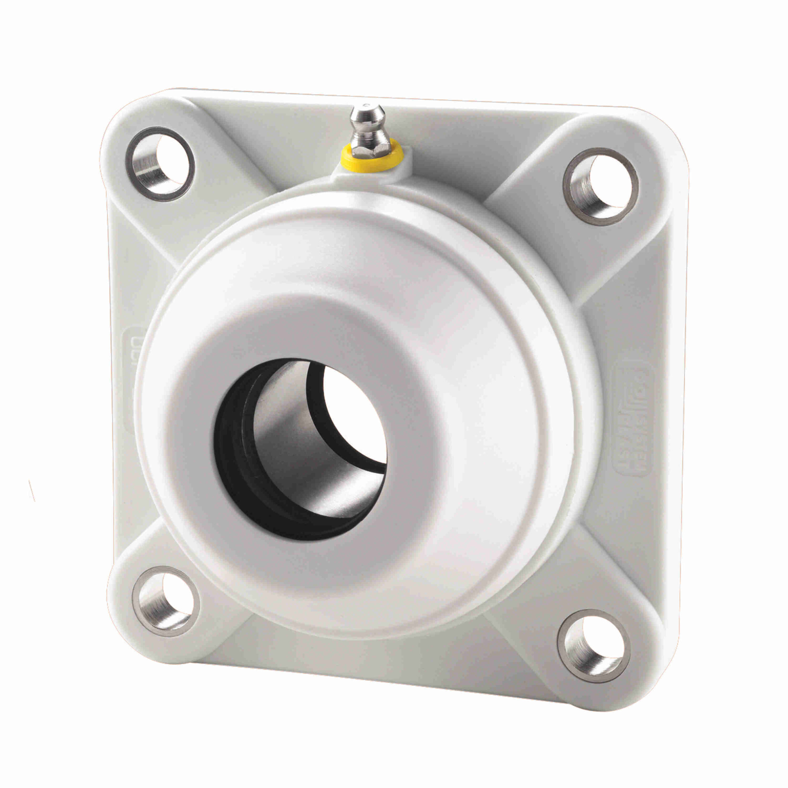 System Plast Mounted Nolu-Clean Four Bolt Flange Ball Bearing – 400 Series Stainless Steel – Setscrew Lock – Open End Cap/Back Seal included – UCFQ208-24-SS-NC-OEC